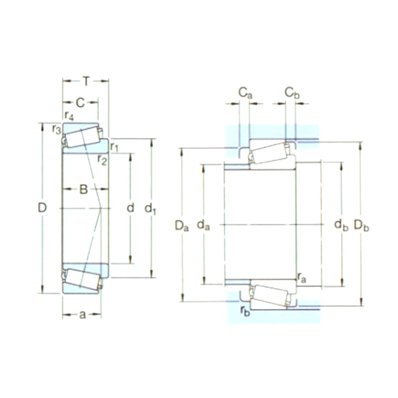 | D1 | D | B | DY.C. (CR) | STC (COR) | Evaluări de viteză | Limitarea vitezei | Dimensiuni (ABMA) | d | D1 ~ | B | C | R1,2 (min) | R3,4 (min) | a | da (max) | DB (min) | DA (min) | Da (max) | DB (min) | CA (min) | CB (min) | RA (Max) | RB (Max) | e | Y | Eu | |||